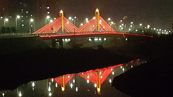 宛溪之水从东北角注入宛陵湖,回旋流连,带着市民们的感激与句溪一起汇入水阳江。周末的傍晚,漫步于宛溪河畔,观赏流光溢彩的彩虹桥,仿佛置身于“二溪夹明镜,双桥落彩虹”的意境之中。这种亲历岂是大诗人所能感受!